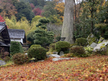 紅葉の見頃を迎えている「石谷家住宅」(智頭町)で11月14日~16日、「秋の庭園特別公開」第1期が行われた。21日~24日に第2期が行われる。入館料に加えて散策料200円で庭園に入ることができ、普段は立ち入れない裏門なども公開する。
