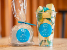 定番のドリンクメニューは全22種類。人気メニューは「生クリームラテ」(M=650円、L=750円、LL=850円)。フレーバーを抹茶、ほうじ茶、エスプレッソ、チョコレート、キャラメル、チョコミント、黒蜜から選べる。選んだフレーバーのソースをカップに入れ、そこに牛乳をつぎ、選んだフレーバーの生クリームをのせる。そのほか、生クリーム、アイス、クッキー、ソース、ゼリーが入った「飲むパフェ」(M=850円、L=1,050円、LL=1,450円)、りんご飴(650円)も用意する。