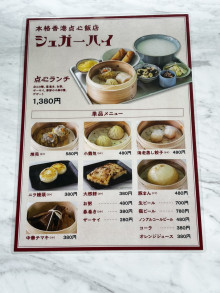 メニューは、点心3 種に春巻き、おかゆ、ザーサイ、季節の小鉢2種、デザートが付く「点心ランチ」(1,380円)、「小籠包(ショウロンポー)」(480円)などの単品、ドリンクを用意。香港出身のシェフが作る点心は「圓記」から仕入れて提供する。人気メニューは「焼売(シューマイ)」(580円)と「大根餅」(380円)。おすすめメニューは「中華チマキ」(380円)。山根社長は「粗びきのゴロっとした肉が入っていて食べ応えがある」と話す。