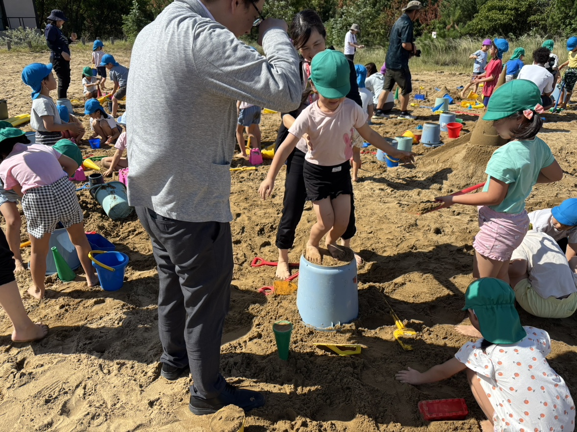 「鳥取砂丘フィールドハウス」前広場で10月6日、鳥取市内の幼稚園・保育園・こども園の園児を対象とした砂遊びイベント「すなばようちえん」が開催された。