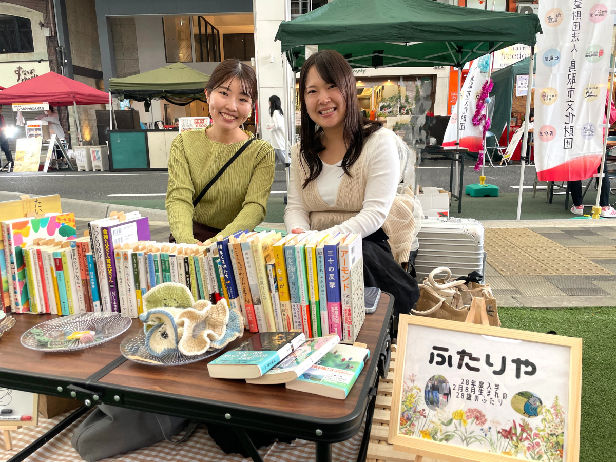 鳥取駅前のシンボル「バード・ハット」(鳥取市今町)で10月19日、鳥取大学地域学部の小笠原拓教授と学生4人が運営する一箱古本市「トットリヒトハコ」が開かれた。