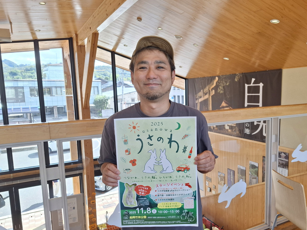 来場を呼びかける「やずうさぎプロジェクト」副代表の中村さん