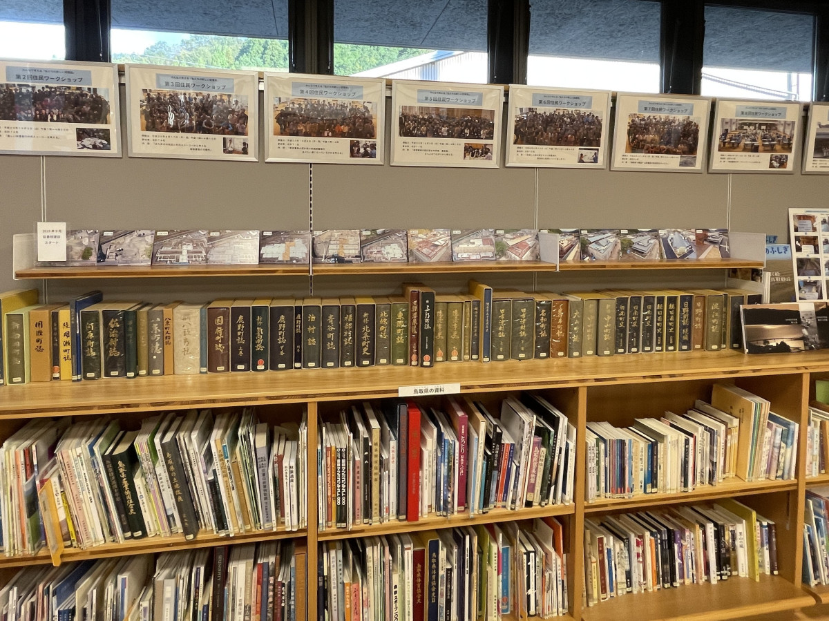 ちえの森ちづ図書館の「地域資料コーナー」。住民ワークショップの様子も展示する。