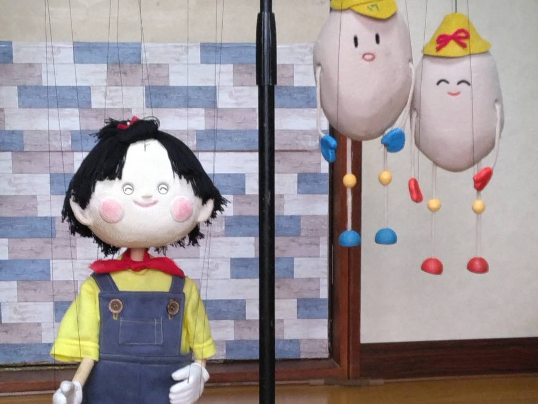 アピオスを広めるために作ったという「あっぴーちゃん」のマリオネット人形 。大学生がデザインを考案した。