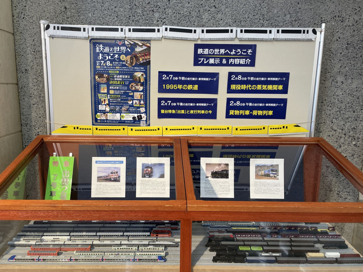 今年の「鉄道の世界へようこそ」わらべ館エントランスホールでのプレ展示。車両解説の内容も紹介する。