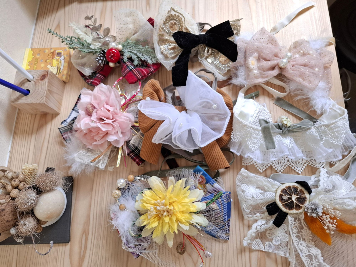 シャンプーブローコース後の写真撮影で使う、中村さんの姉が制作した首飾り